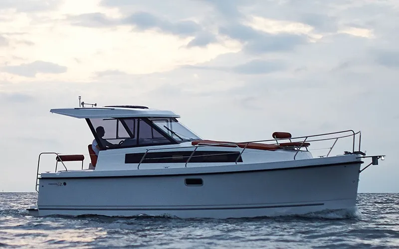 Die Nexus Revo 870 Hardtop Electric & Solar Powered ist ein geräumiges und modernes Motorboot für 4 Personen. Dieses neue Boot ist ideal für einen entspannten Bootsurlaub in den Niederlanden und wird auch von Heeg vermietet. Sie können auf dem sonnendeck sonnenbaden, auf der Bank auf dem Vordeck eine Tasse Kaffee trinken und im Cockpit mit Familie oder Freunden entspannen. Die Nexus Revo 870 hat eine Länge von 8,70 m, eine Breite von 2,90 m und einen geringen Tiefgang von nur 0,40 m. Dieses Luxus Motorboot hat einen komfortablen und stilvollen Interieur. Unter Deck befinden sich zwei abschließbare Kabinen, jeweils mit einem Doppelbett. Es gibt ein Badezimmer mit Waschbecken, Dusche und Elektrischer Toilette. An bord der Nexus Revo 870 Electric gibt es eien Dinette mit komfortablen Sitzbänken, eine moderne Küche mit Induktionkochfeld und viel stauraum.